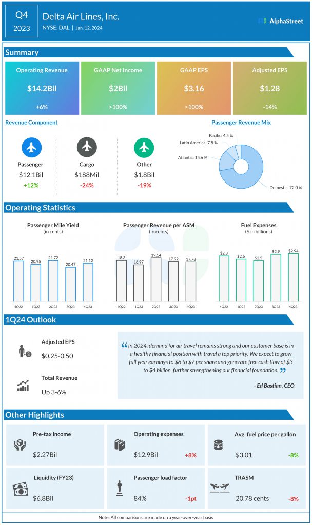 Delta Air Lines (NYSE: DAL) reported fourth quarter 2023 earnings results today.