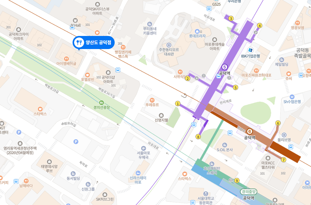 공덕 "양산도"의 위치는 공덕역 1번 출구에서 3분 정도 걸으면 좌측에 간판이 보입니다.