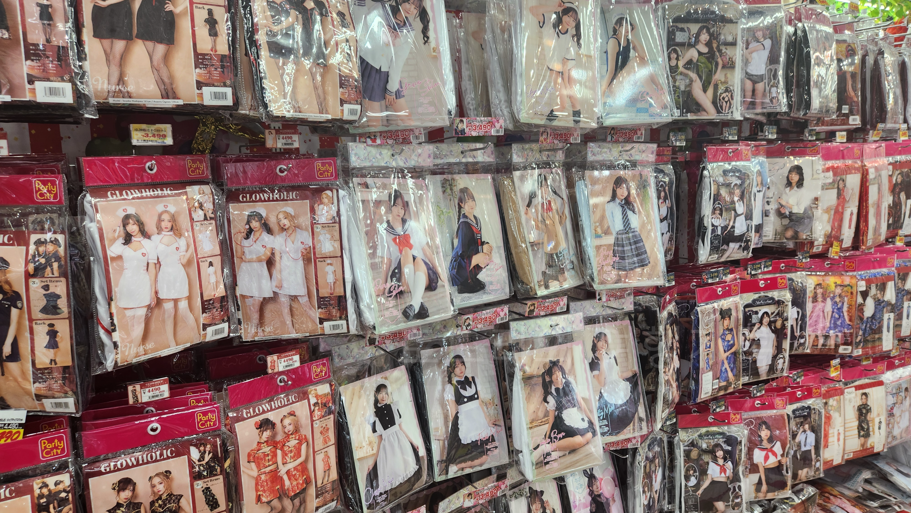 라멘 먹고 근처 돈키호테를 가서 이치란 라멘도 구경하고 눈에 익은 시미켄형 광고도 보고... 메이드복도 보고...
