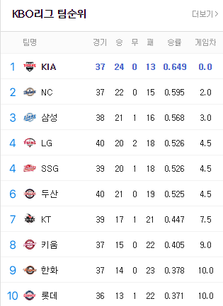 외국인 투수들이 기대 이상으로 잘하고 있고, 양현종, 최형우, 나성범 같은 베테랑들이 팀을 잘 이끌어 시즌 마무리까지 잘해주길 기대합니다.